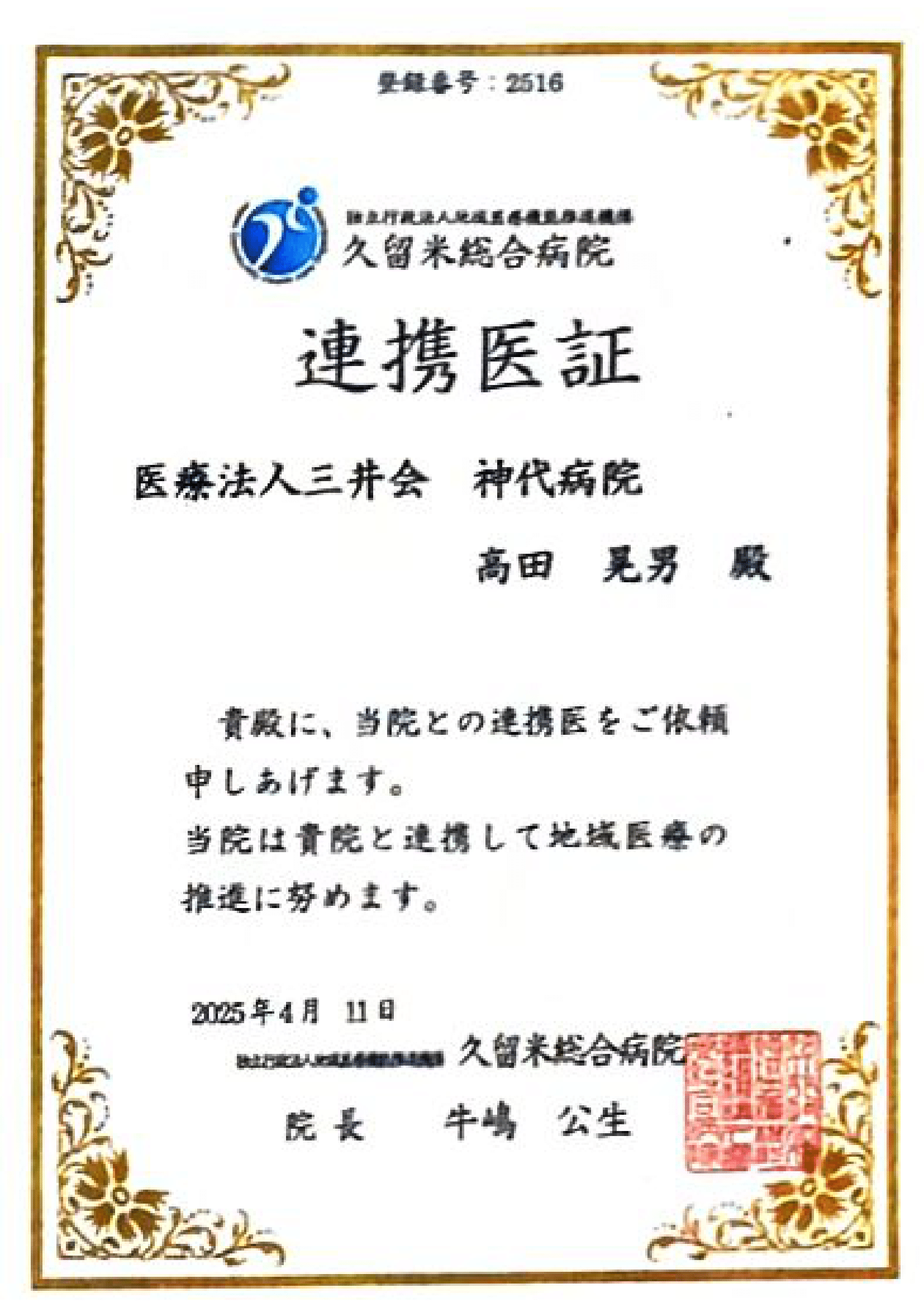 当院では、地域の医療機関の先生方と連携し、切れ目のない医療提供を大切にしています。 その取り組みの一環として、連携体制を構築している医療機関との「連携登録医証」をご紹介します。